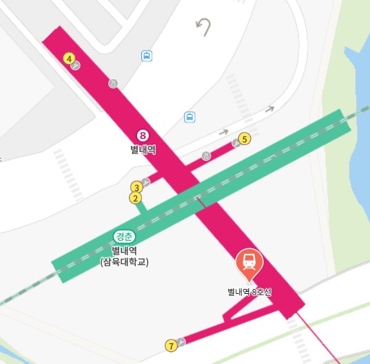 5번 출구는 경춘선 별내역 2번 출구에서 조금만 직진하면 나옵니다. 이 출구는 상대적으로 유동 인구가 적을 것으로 보입니다.
