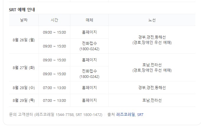 SRT 예매대상기간